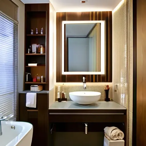 Мои практические советы: выбирайте зеркала с подсветкой и полки-органайзеры из прозрачного стекла. Не бойтесь экспериментировать с расположением светильников и использовать встроенные ниши — так вы сэкономите ценное пространство и подчеркнёте стиль интерьера.